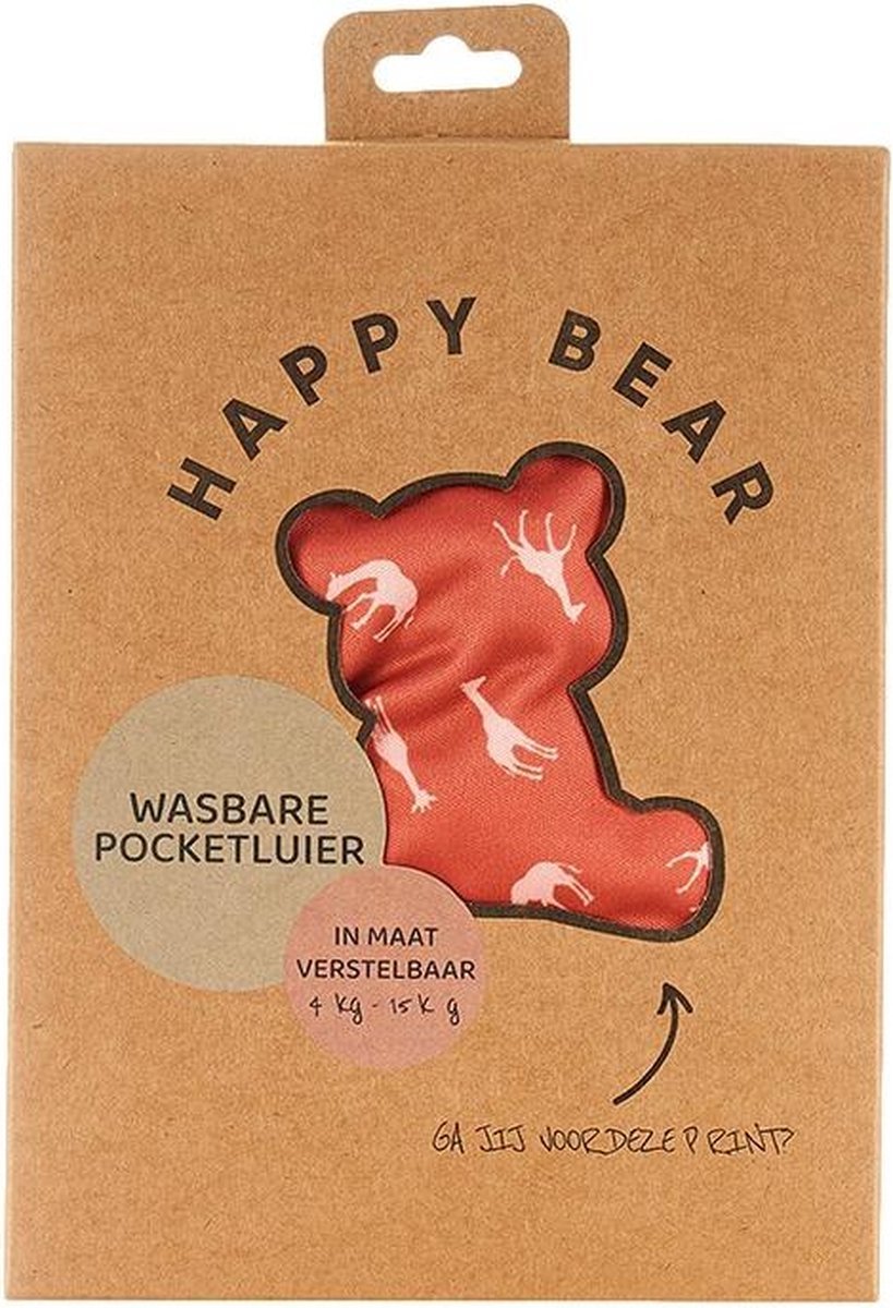 HappyBear | Pocketluier – Savanna | Wasbare luier | Onesize – 5kg t/m 17kg | Dubbele lekgoten – minder kans op doorlekken | Dubbele pocketopening | Inclusief bamboe booster & microvezel booster