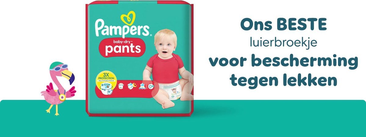 - Pampers Baby-Dry Pants Maat 6 luierbroekjes hebben Stop & Protect pocket dat helpt om lekken aan de achterkant van de luier voorkomen